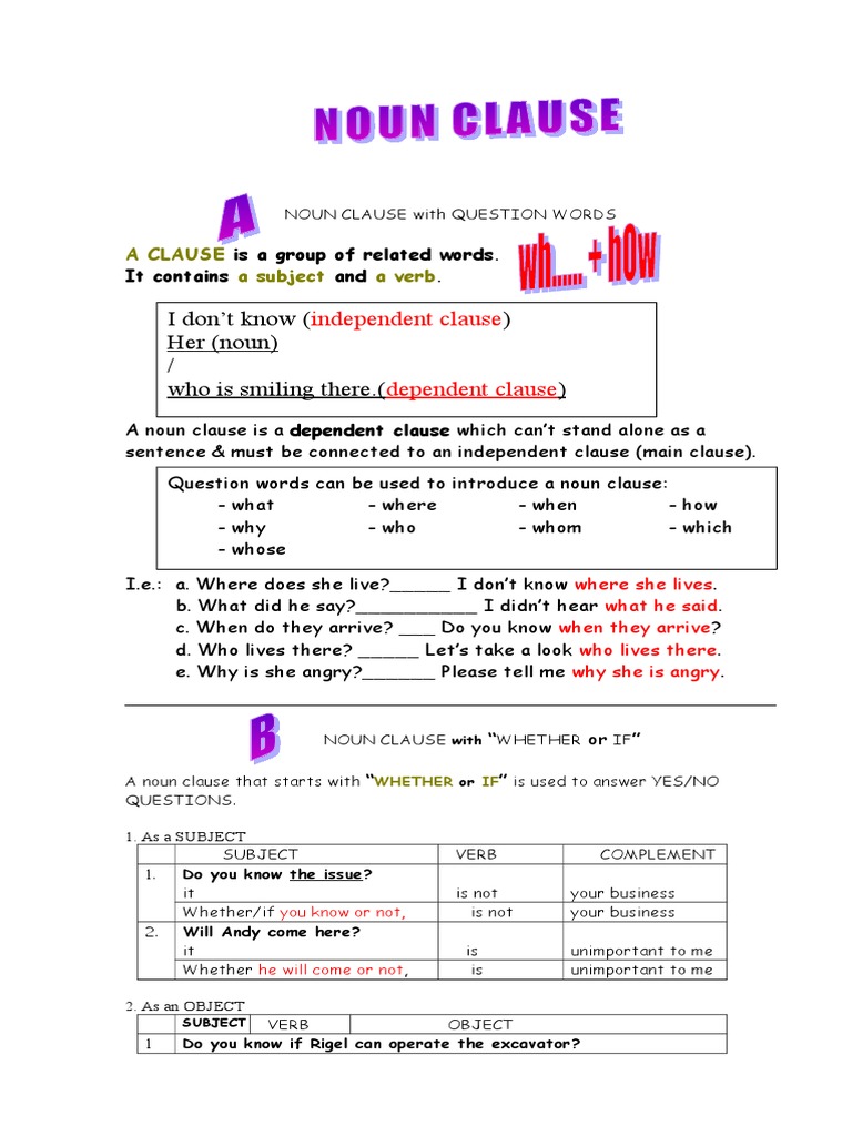 Noun Clauses Activity from files.liveworksheets.com Every clause has at least one subject and one verb. In a sentence, a noun clause will be a dependent clause. Noun clauses act as direct objects, subjects, indirect objects, predicate nominatives, or objects of a preposition a noun phrase is a group of words that function as a single noun. Noun clauses are dependent clauses that function as nouns. Adverbial, adjectival, nominal dependent clauses may work like adverbs, adjectives, or nouns in complex sentences. Noun clauses can act as subjects, direct objects, indirect objects, predicate nominatives, or objects of a preposition. Since the adjectival clauses in the above examples are not needed to clarify the noun that they describe, they are nonessential and should be separated from the rest of the sentence with commas. It needs something else to finish it.